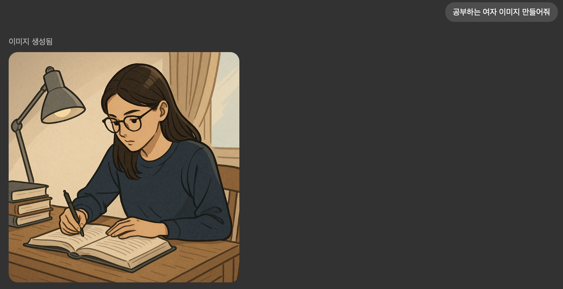 6. “공부하는 여자 이미지 만들어줘” — GPT-5 vs Cursor GPT-5 이미지 비교